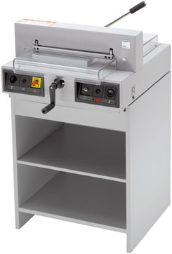 - Optischer Schnittandeuter mit LED ´s - Schneidemesser aus Solinger Qualitätsmesserstahl - Vollstahl-Messerträger - Gehärtete, einstellbare Messerführung - Stabile Ganzmetall-Konstruktion - Papieraufstoßwinkel - Lieferbar als Tischgerät; Untergestell oder Unterschrank mit einem Fachboden als Option gegen Aufpreis lieferbar.